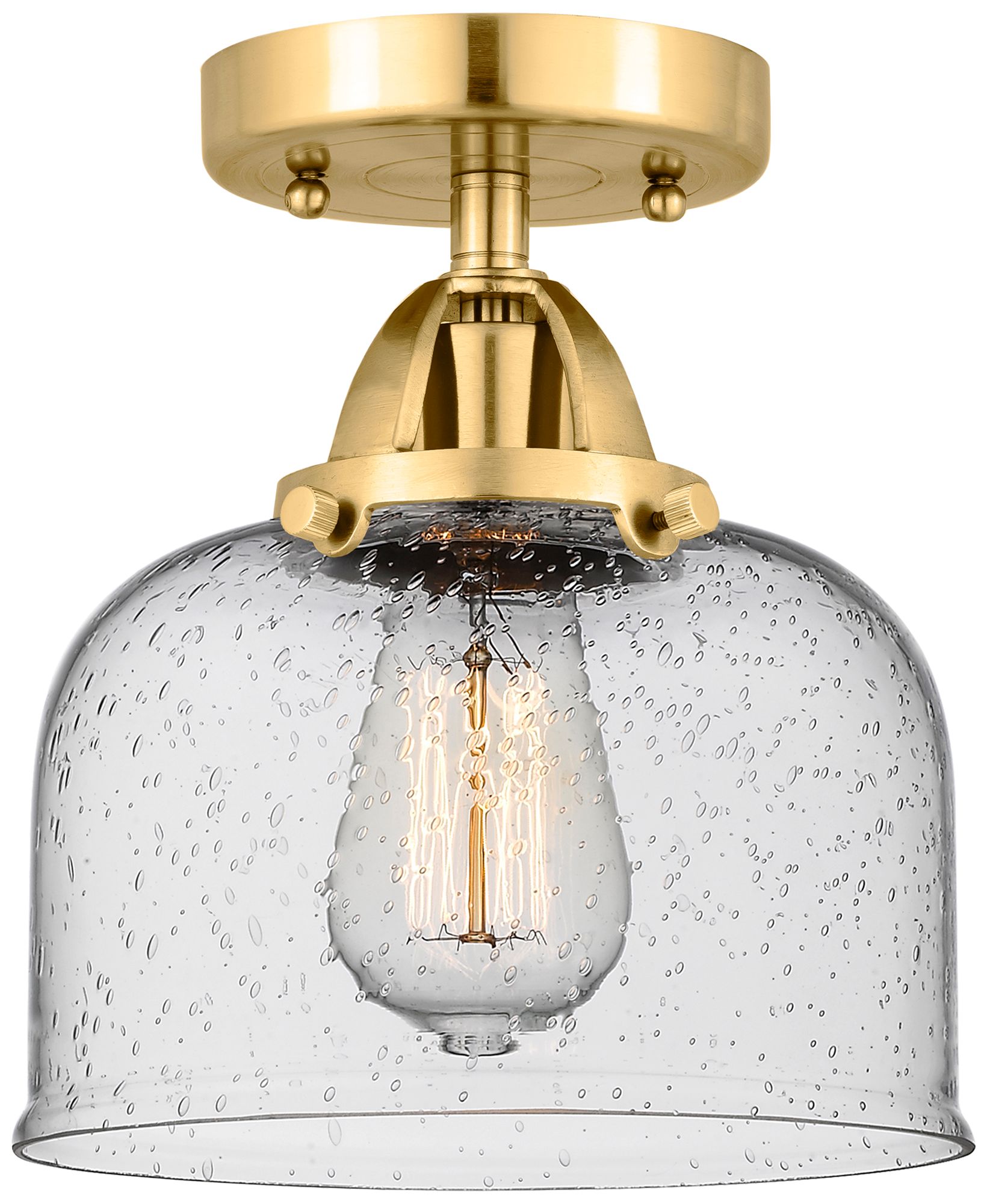 Nouveau 2 Bell 8" LED Semi-Flush Mount - Satin Gold - Seedy Shade