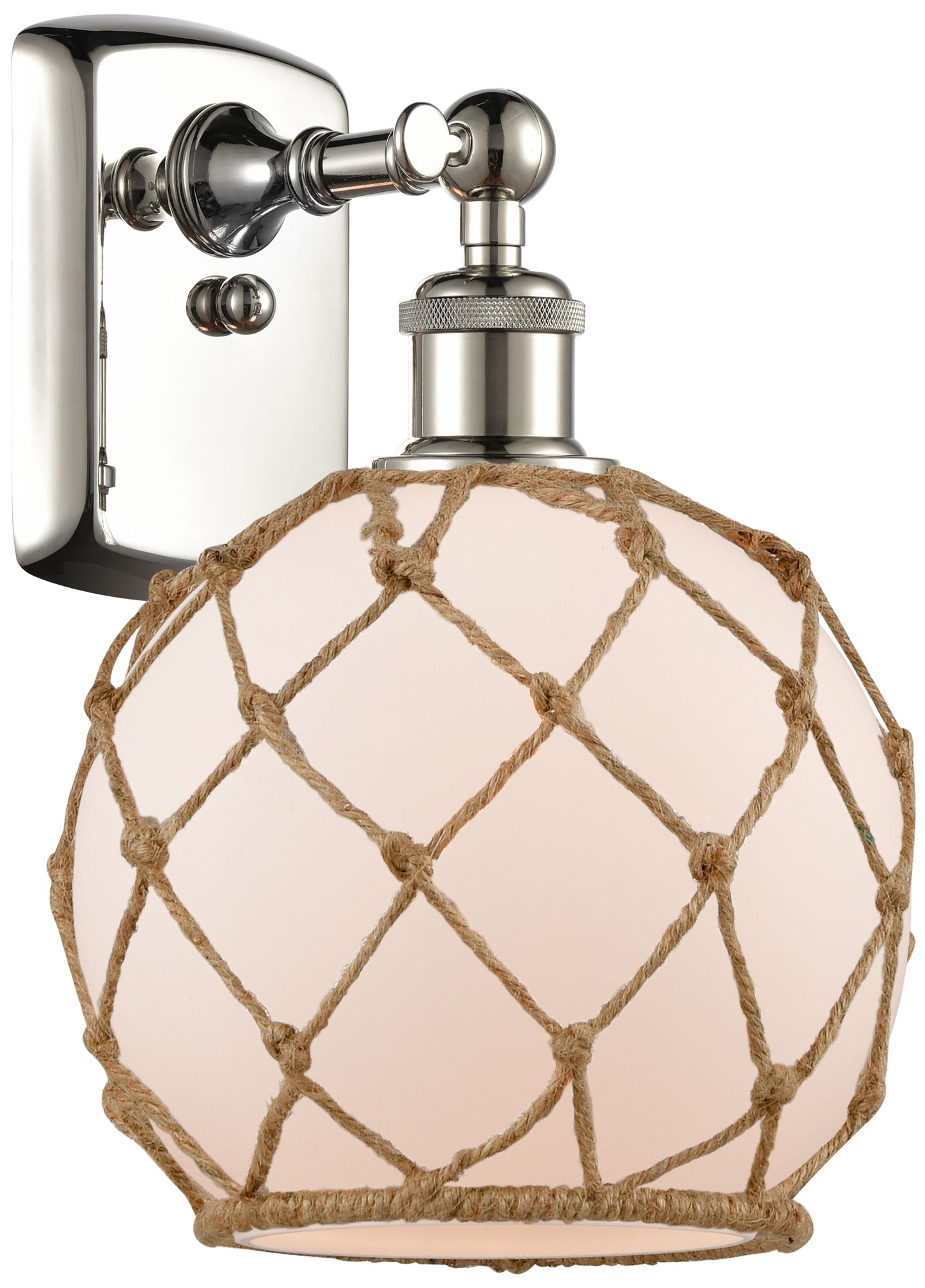 Farmhouse Rope 13"H Polished Nickel Sconce w/ White and Brown Rope Sha