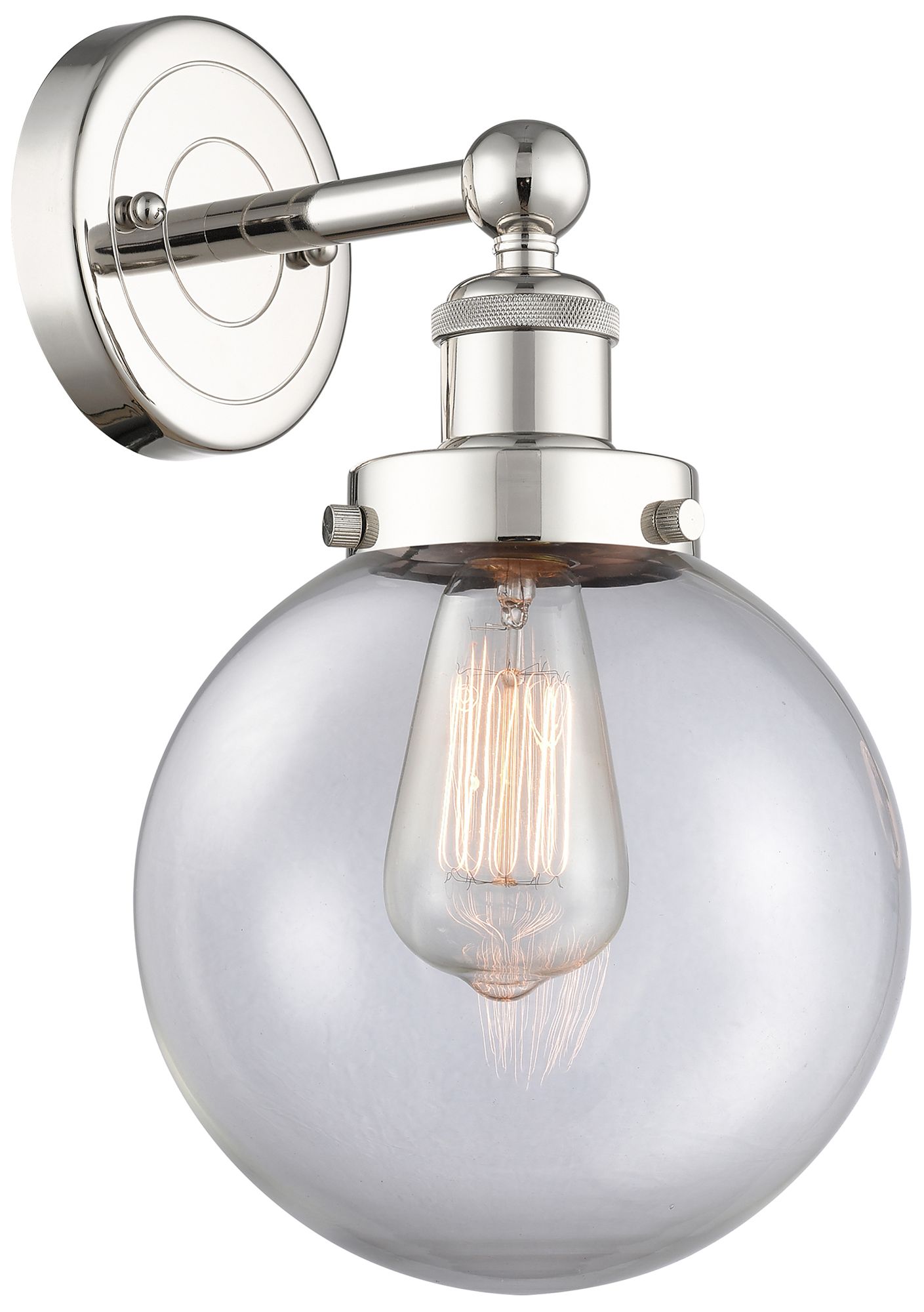 Large Beacon 2.25" High Polished Nickel Sconce With Clear Shade
