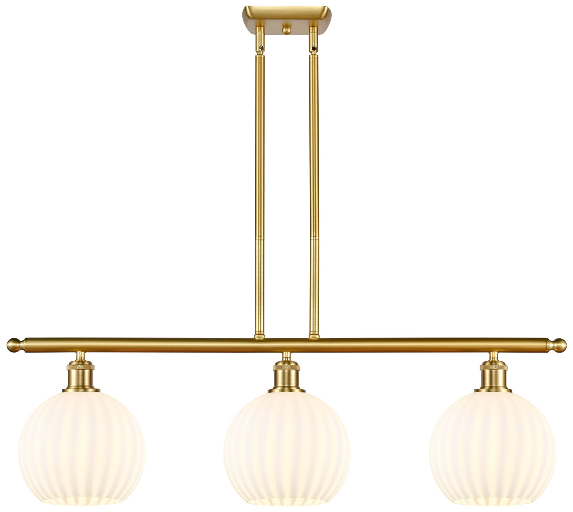 Ballston 36"W 3 Light Gold Stemmed Island Light w/ 8" White Venet