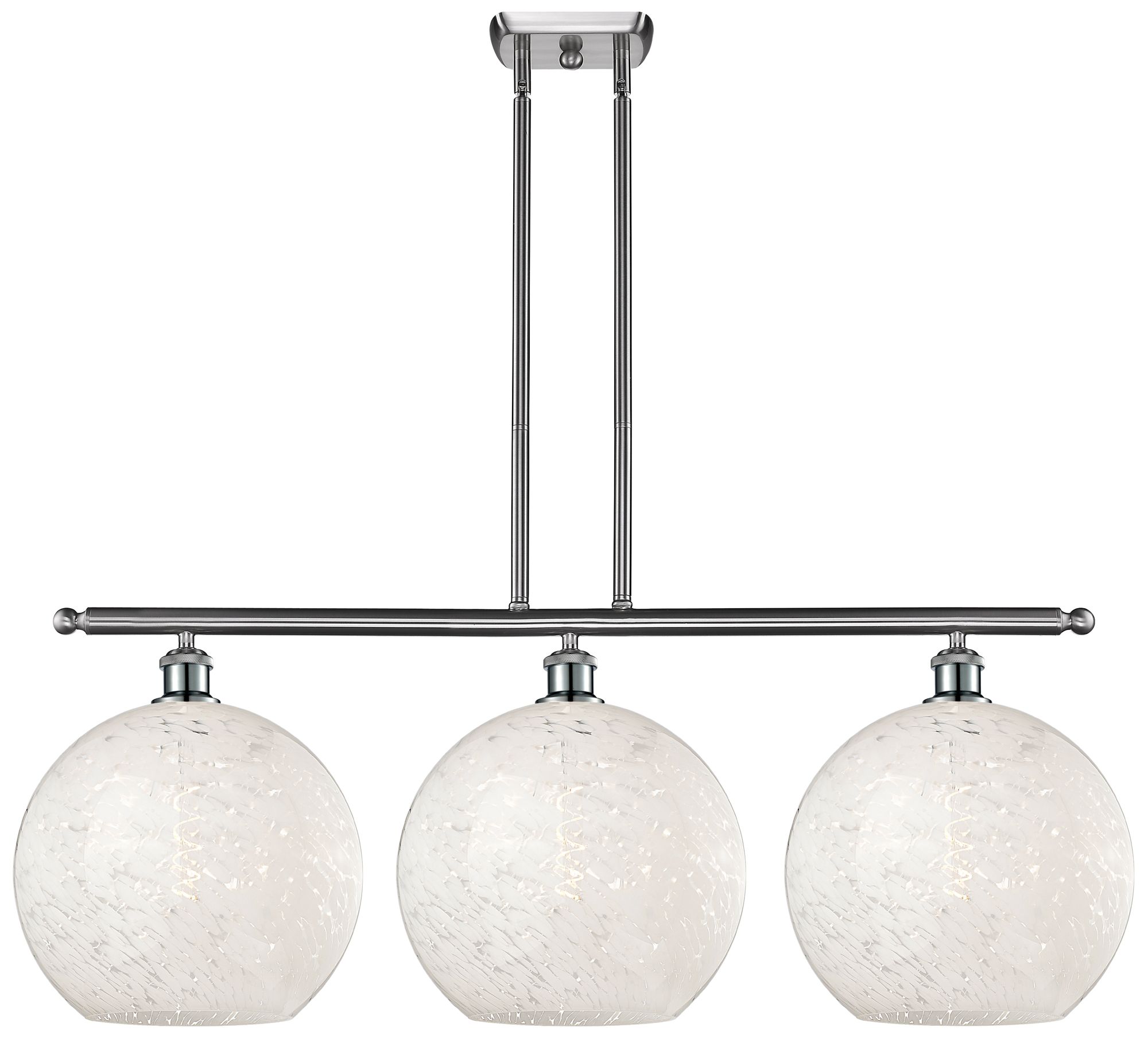 Ballston 38.5"W 3 Light Satin Nickel Stem Island Light w/ Mouchette Sh