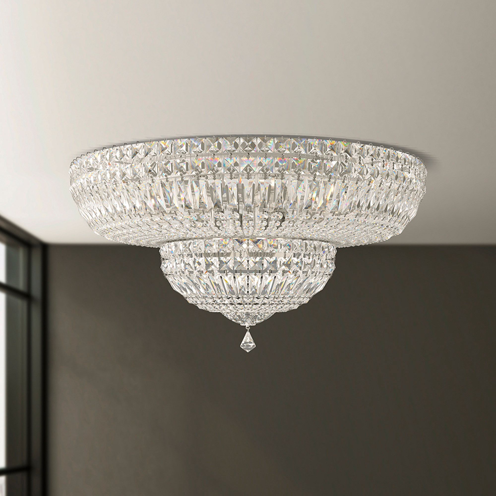 Petit Crystal Deluxe 12"H x 24"W 13-Light Flush Mount in Silver