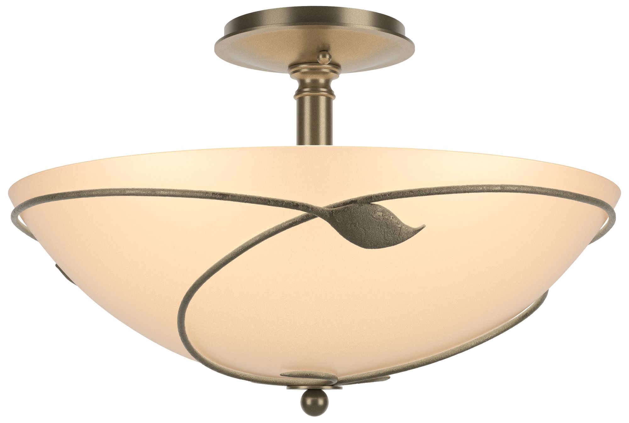 Forged Leaves 16" Wide Large Soft Gold Semi-Flush With Sand Glass Shad