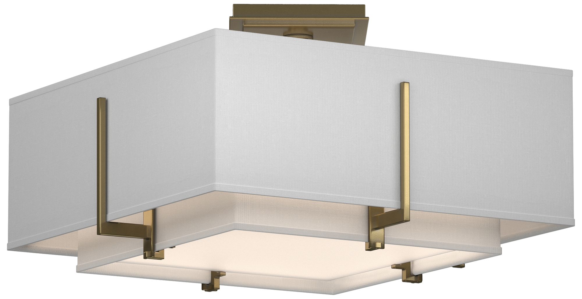 Exos 16.6"W Double Shade Square Brass Semi-Flush w/ Anna & Anna Sh