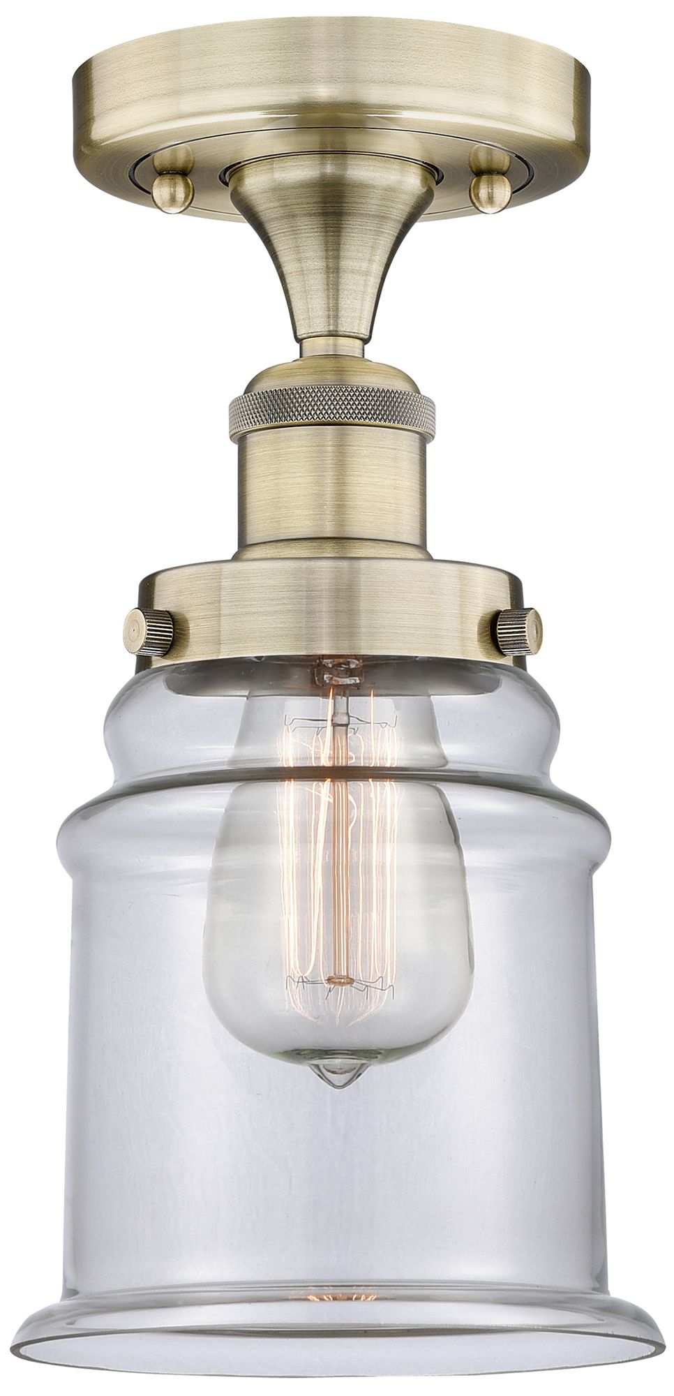 Canton 6" Wide Antique Brass Semi.Flush Mount With Clear Glass Shade