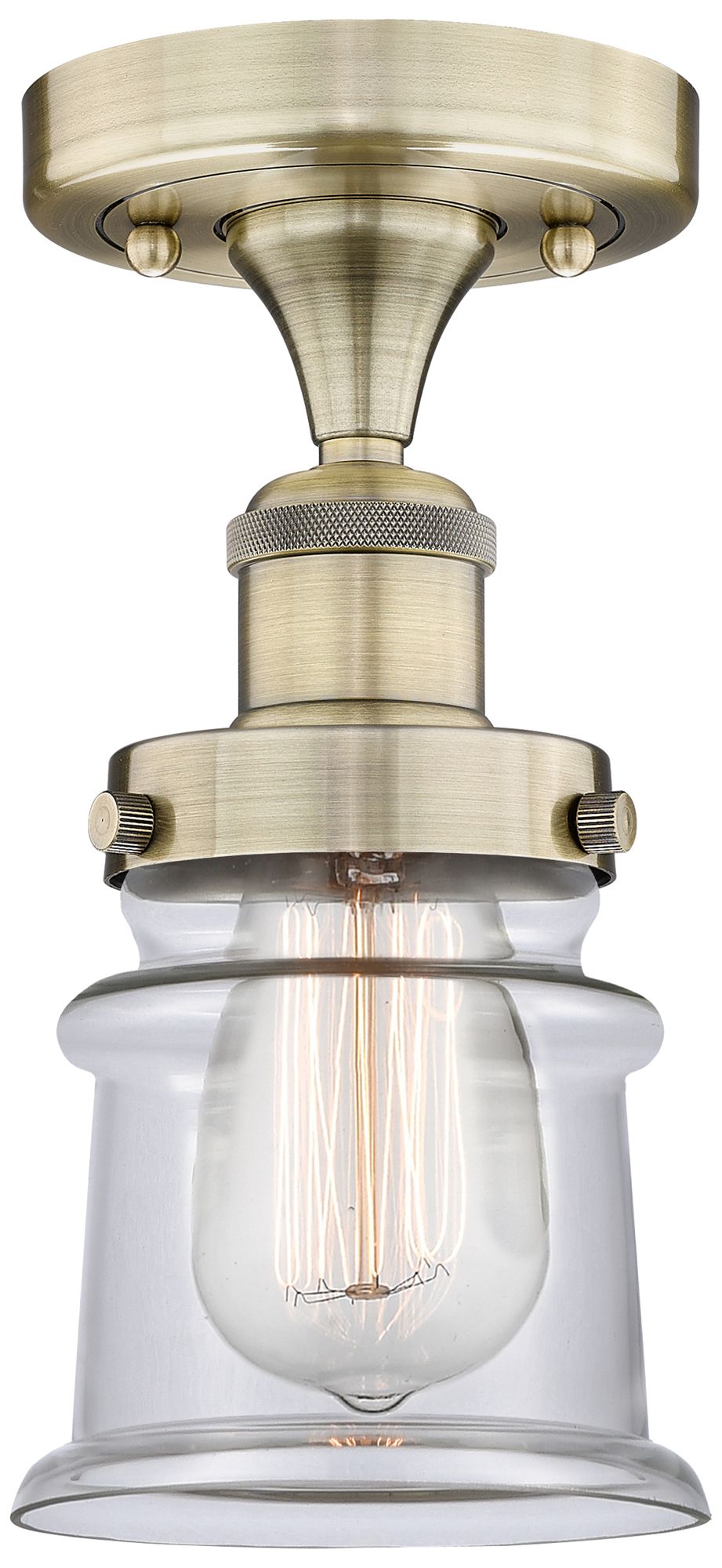 Canton 5.25" Wide Antique Brass Semi.Flush Mount With Clear Glass Shad