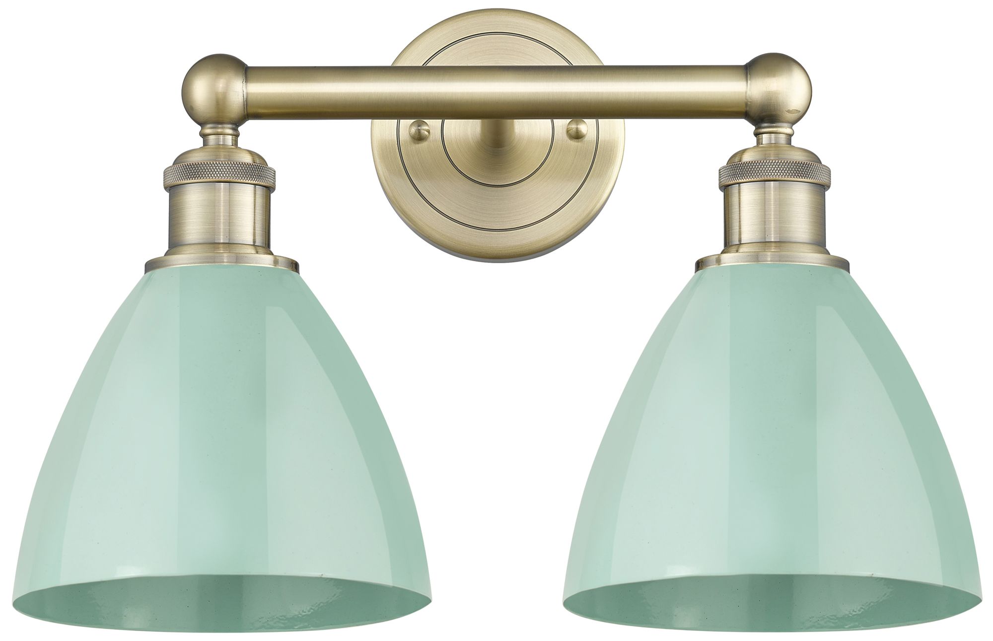 Plymouth Dome 16.5"W 2 Light Antique Brass Bath Light With Seafoam Sha
