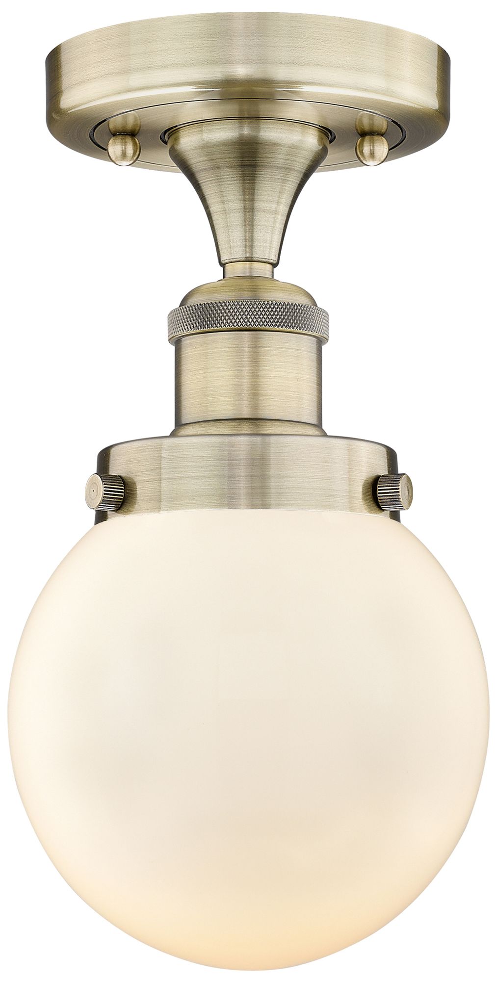 Beacon 6" Wide Antique Brass Semi.Flush Mount With Matte White Glass S