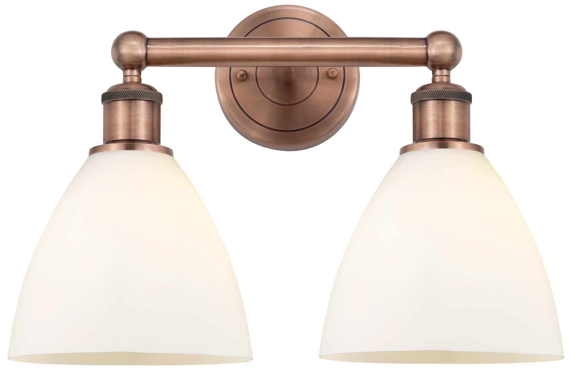 Bristol Glass 16.5"W 2 Light Antique Copper Bath Light With White Shad