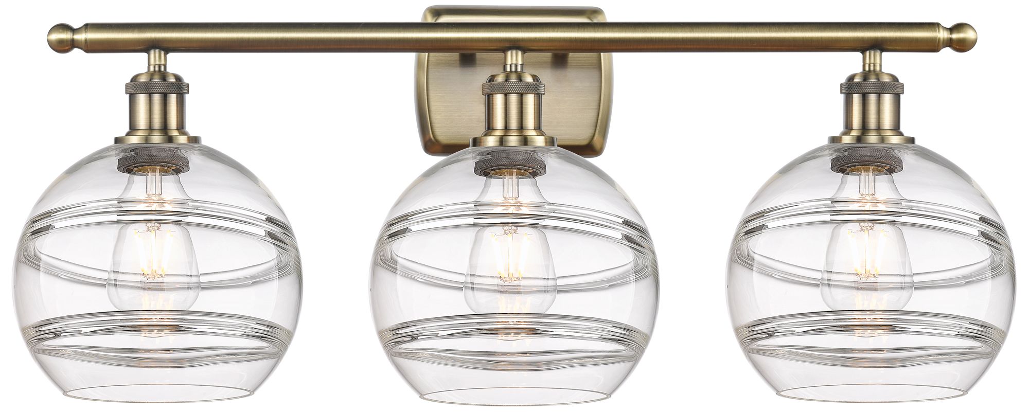 Ballston Rochester 28"W 3 Light Antique Brass Bath Light w/ 8" Cl