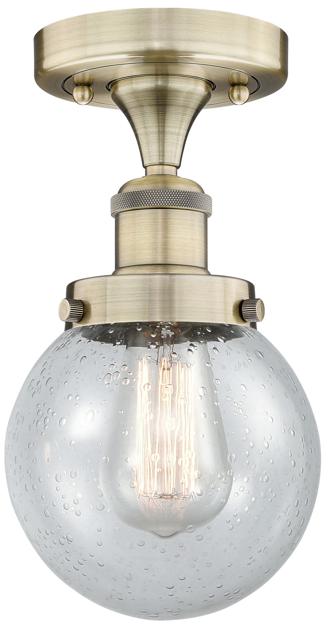 Beacon 6" Wide Antique Brass Semi.Flush Mount With Seedy Glass Shade