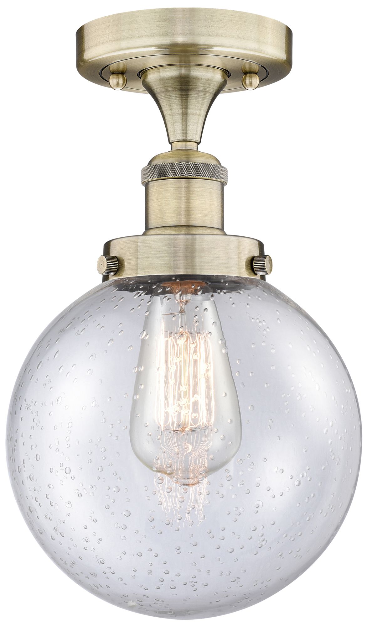 Beacon 8" Wide Antique Brass Semi.Flush Mount With Seedy Glass Shade