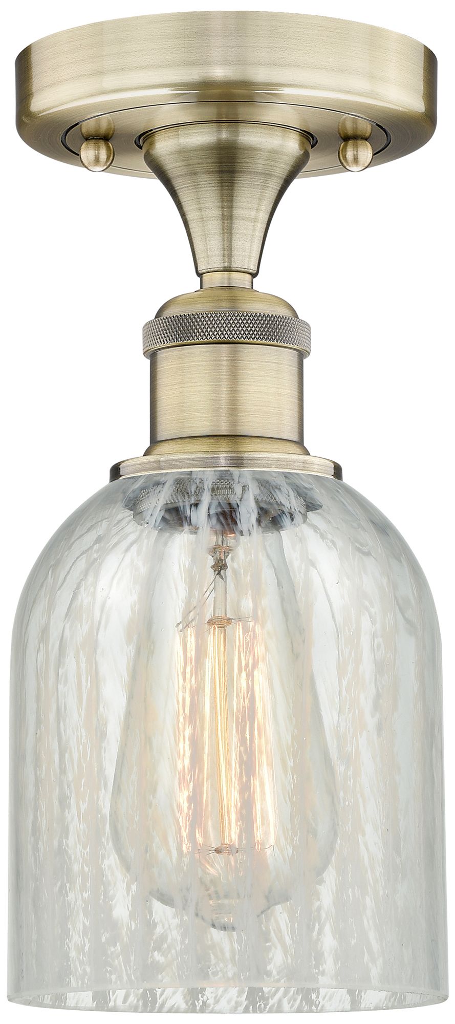 Caledonia 5" Wide Antique Brass Flush Mount With Mouchette Glass Shade