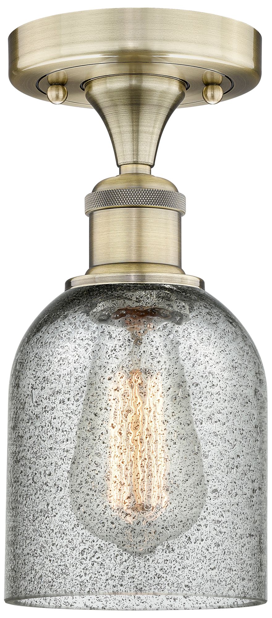 Caledonia 5" Wide Antique Brass Flush Mount With Charcoal Glass Shade