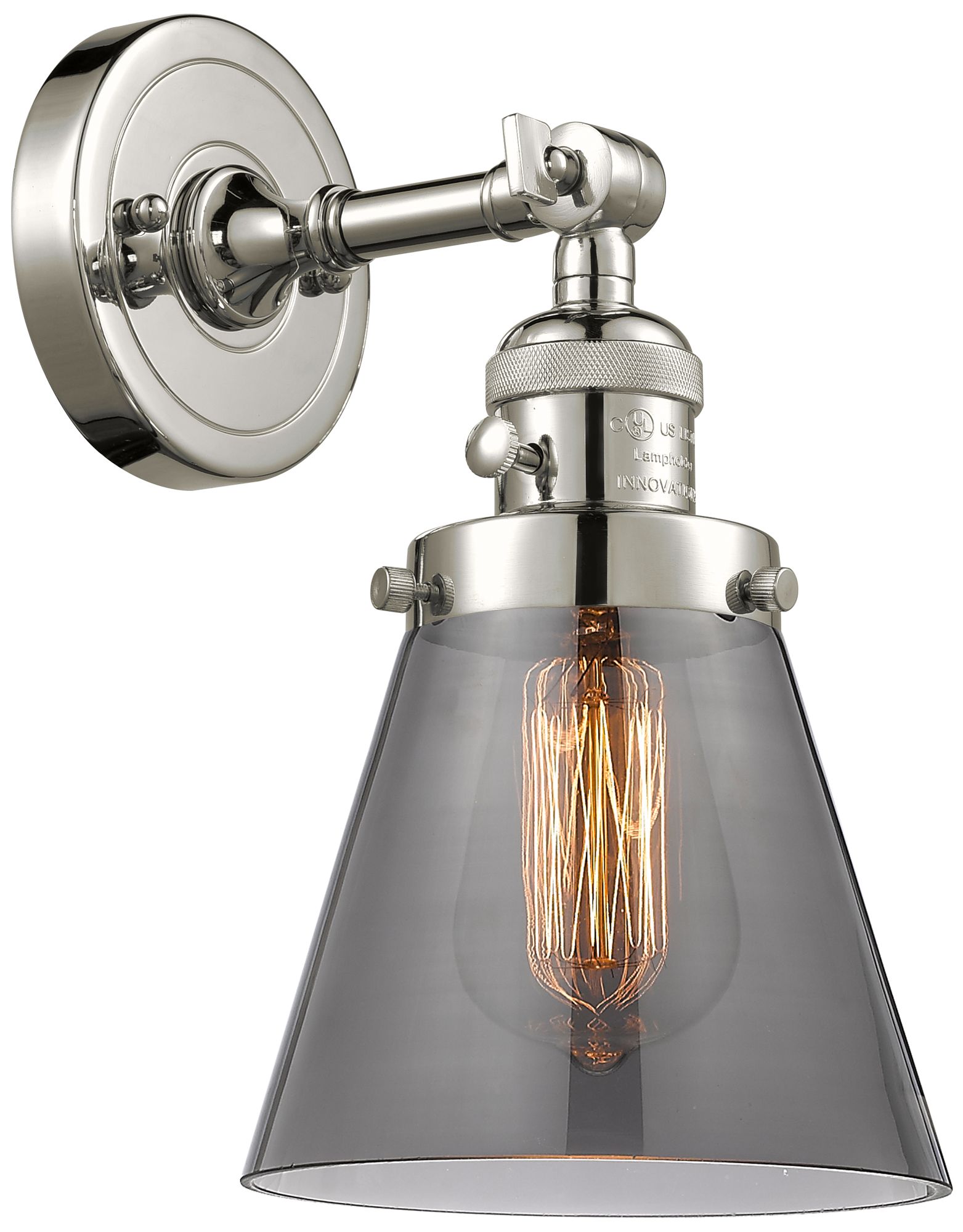 Cone 6" Polished Nickel Sconce w/ Plated Smoke Shade