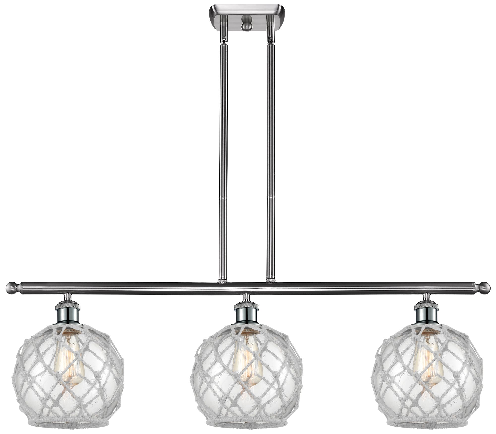 Farmhouse 36"W 3 Light Satin Nickel Island Light w/ Clear and White Sh