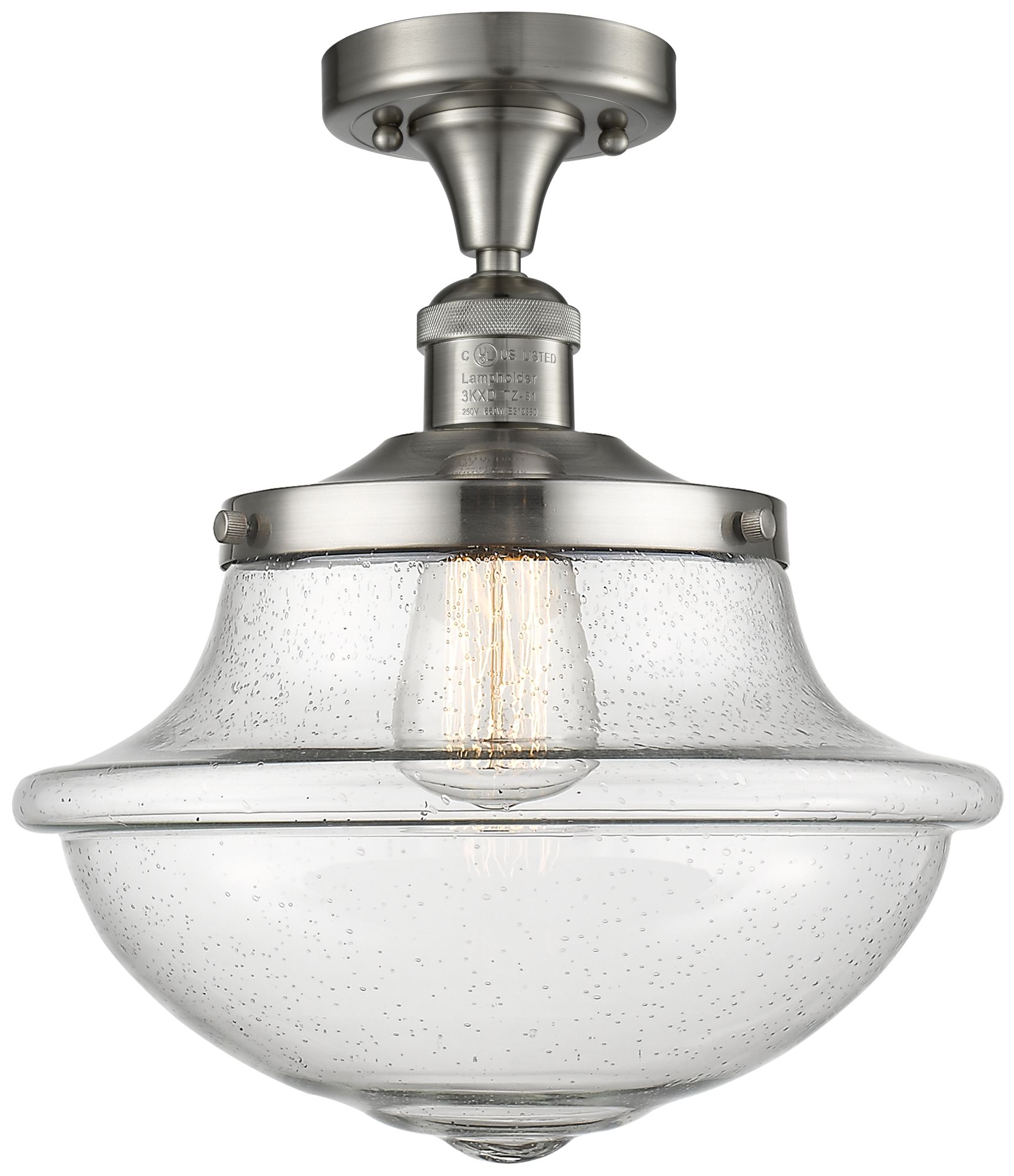 Franklin Small Oxford 12" Brushed Nickel Semi Flush w/ Seedy Shade
