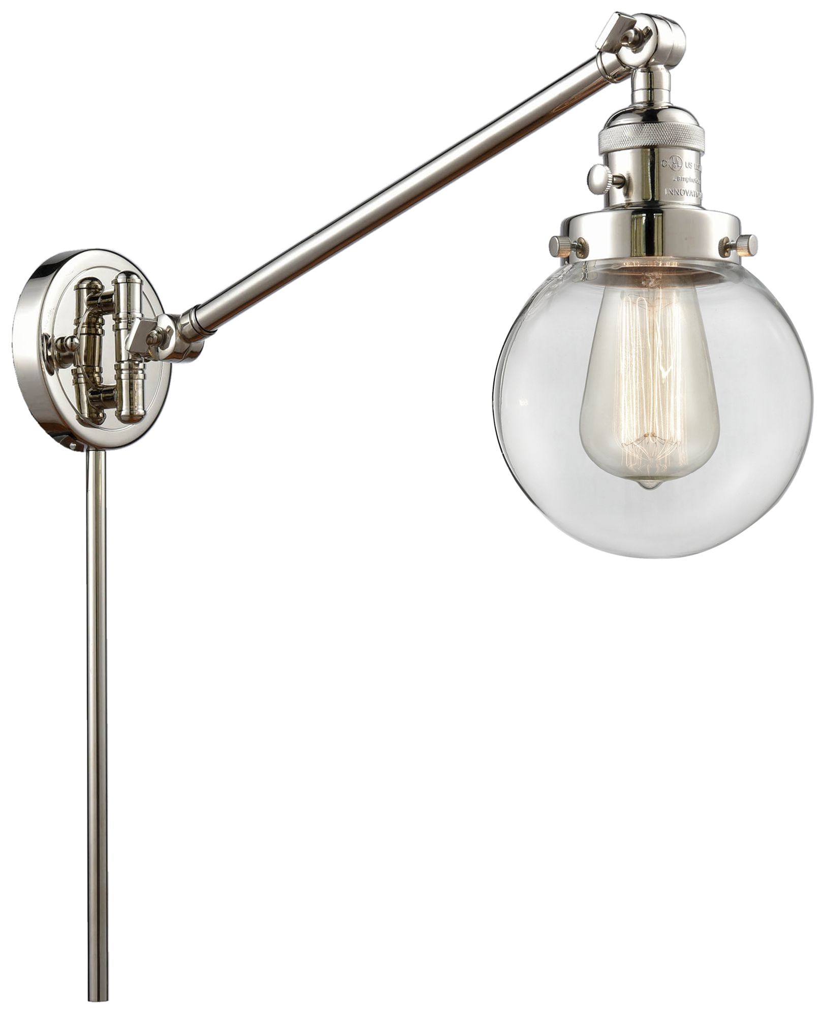 Beacon 6" Polished Nickel Swing Arm With Clear Shade