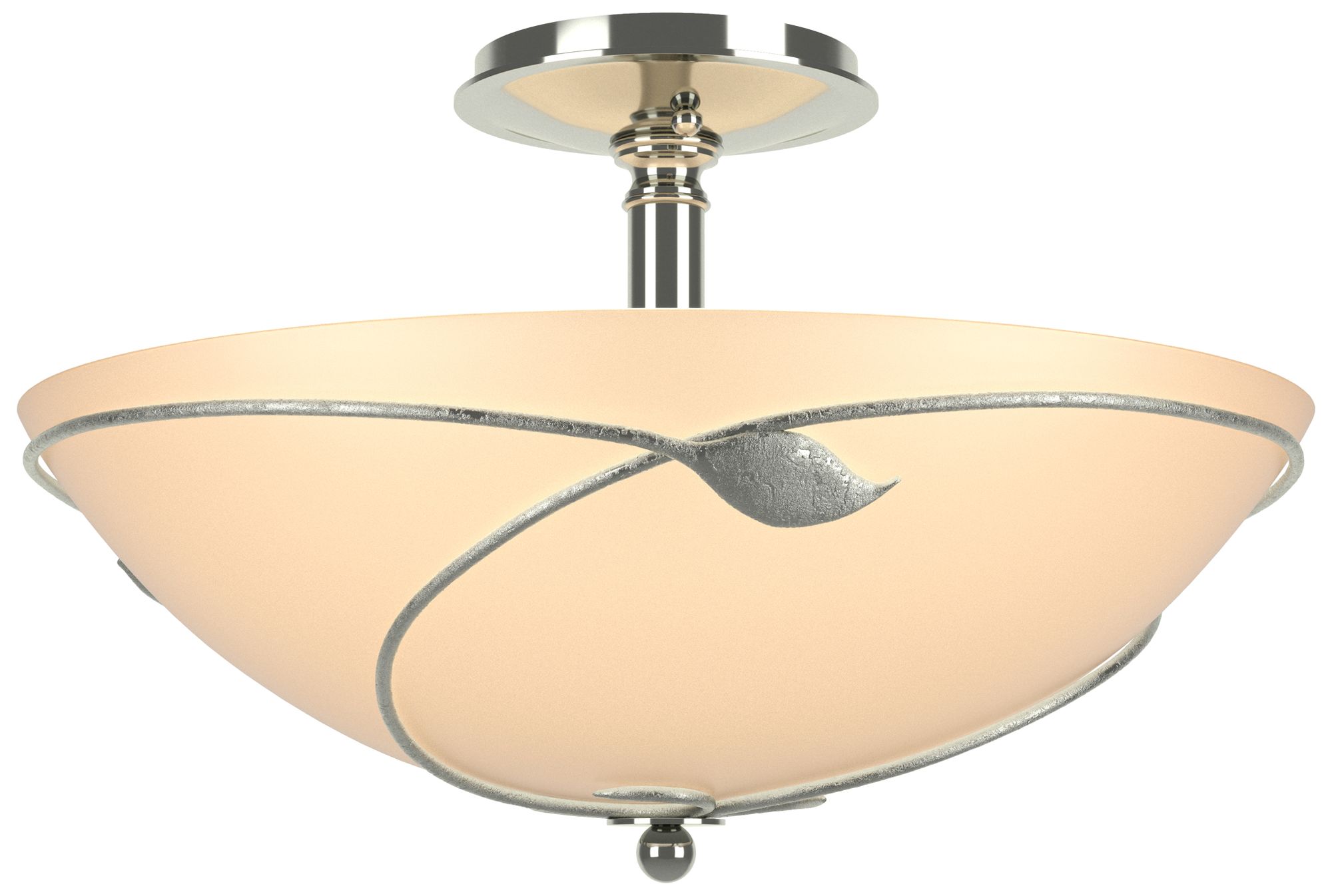 Forged Leaves 16" Wide Large Sterling Semi-Flush With Sand Glass Shade