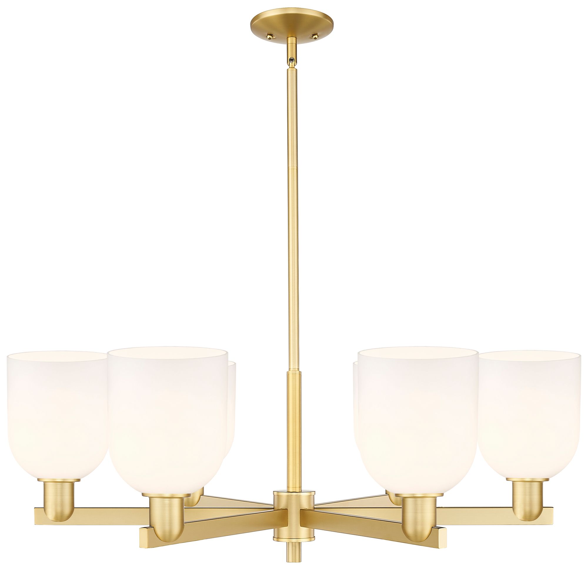 Arcadia Bella 35"W 6 Light Gold Stem Hung Chandelier w/ White Shade