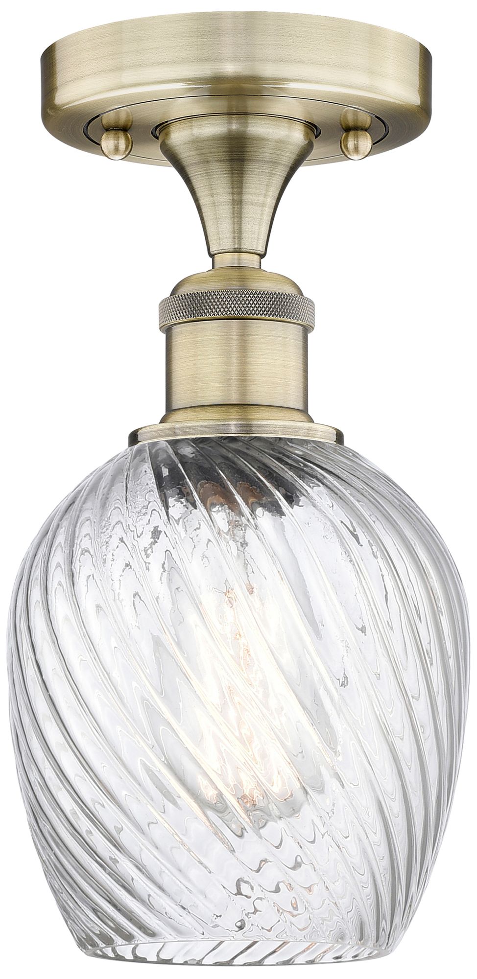 Salina 5"W Antique Brass Flush Mount With Clear Spiral Fluted Glass Sh