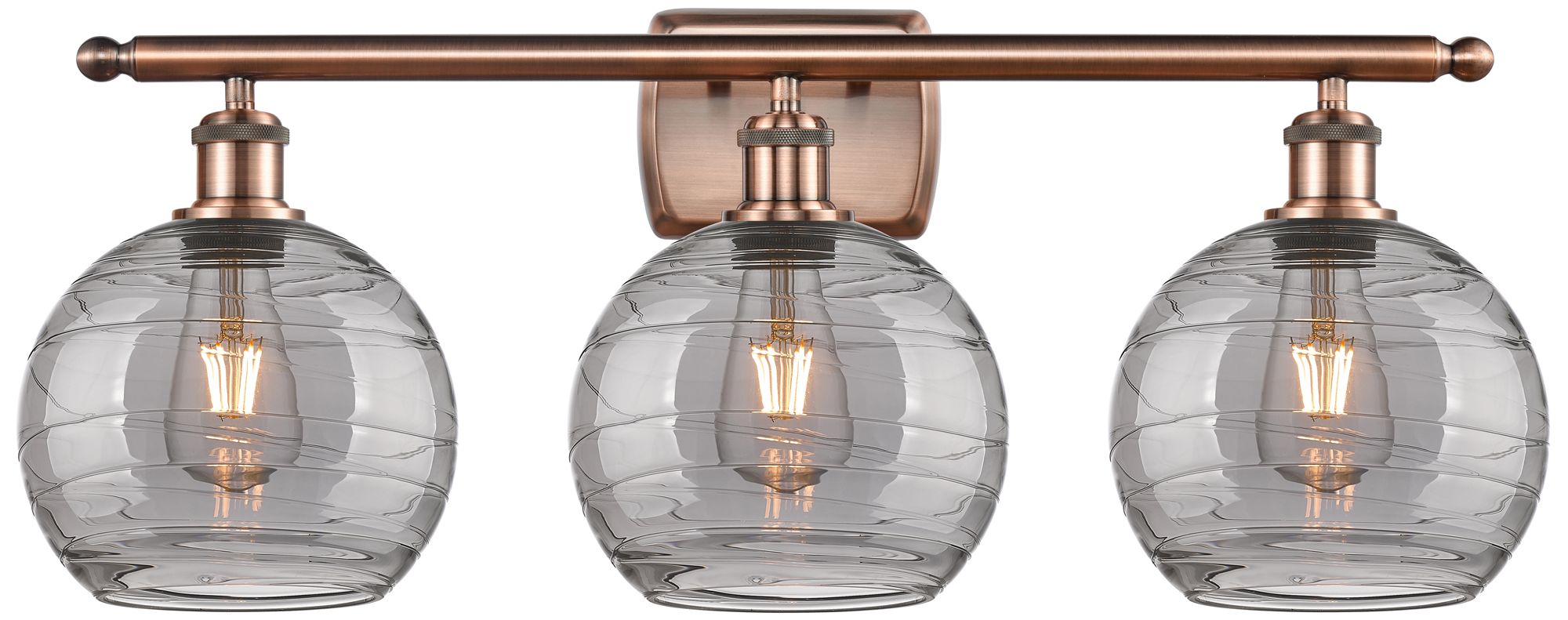 Ballston Athens 28"W 3 Light Copper Bath Light w/ 8" Smoke Swirl