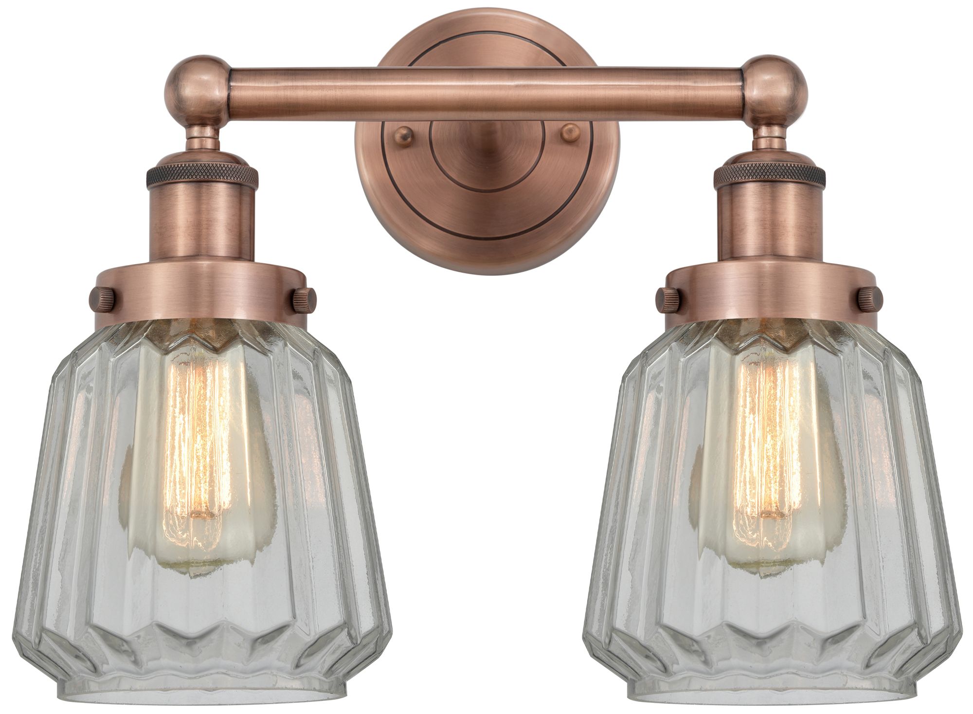 Edison Chatham 15.5"W 2 Light Antique Copper Bath Light With White Sha