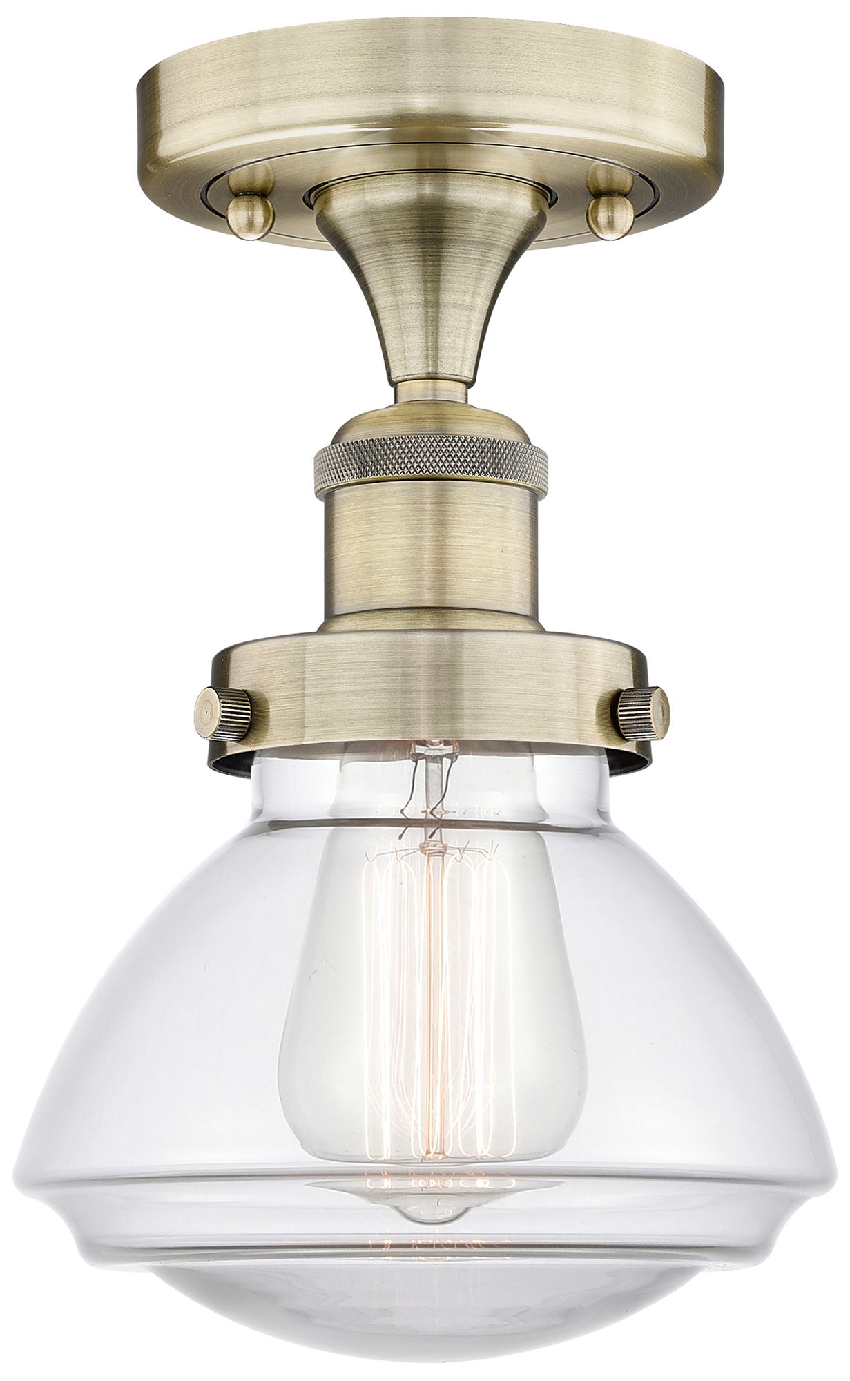 Olean 6.5" Wide Antique Brass Semi.Flush Mount With Clear Glass Shade