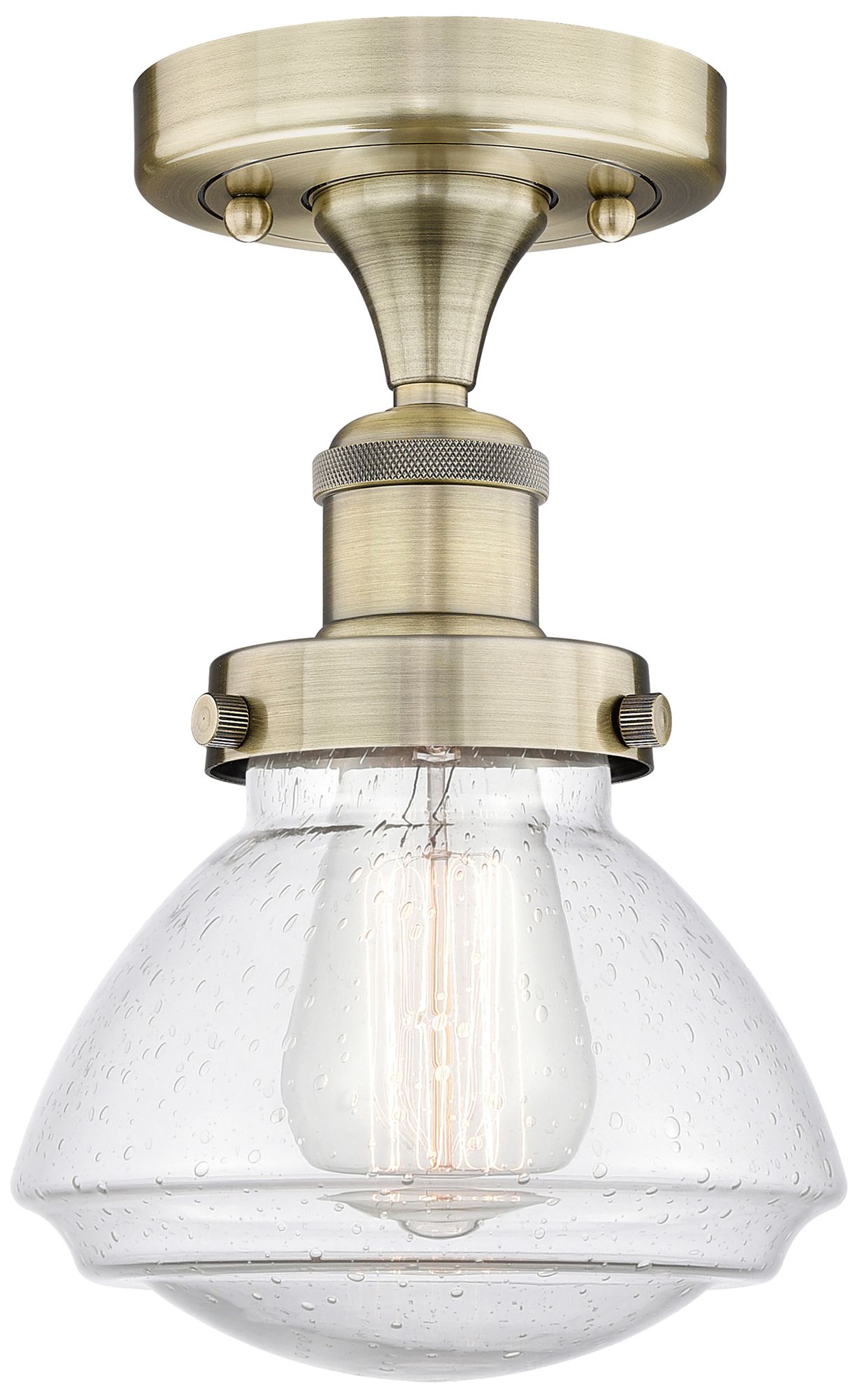 Olean 6.5" Wide Antique Brass Semi.Flush Mount With Seedy Glass Shade