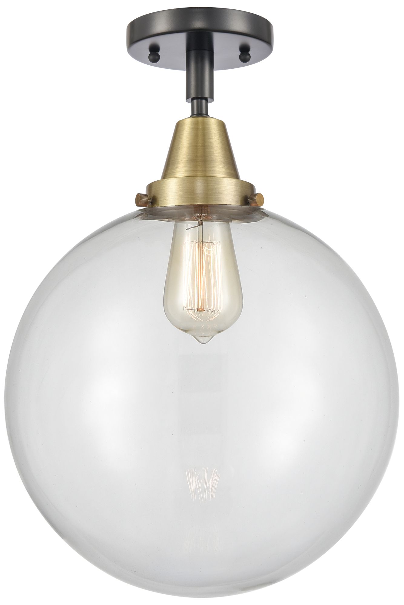 Caden Beacon 12" LED Flush Mount - Black Antique Brass - Clear Shade