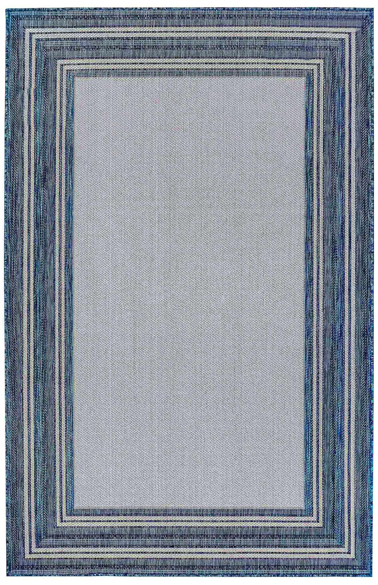 Carmel Multi-Border 842533 6'6"x9'3" Navy Outdoor Area Ru