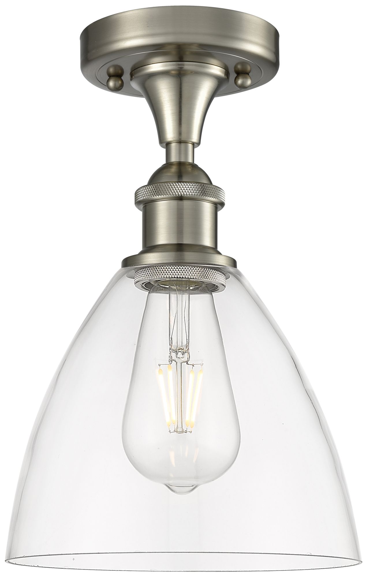 Bristol Glass 8" LED Semi-Flush Mount - Brushed Satin Nickel - Clear