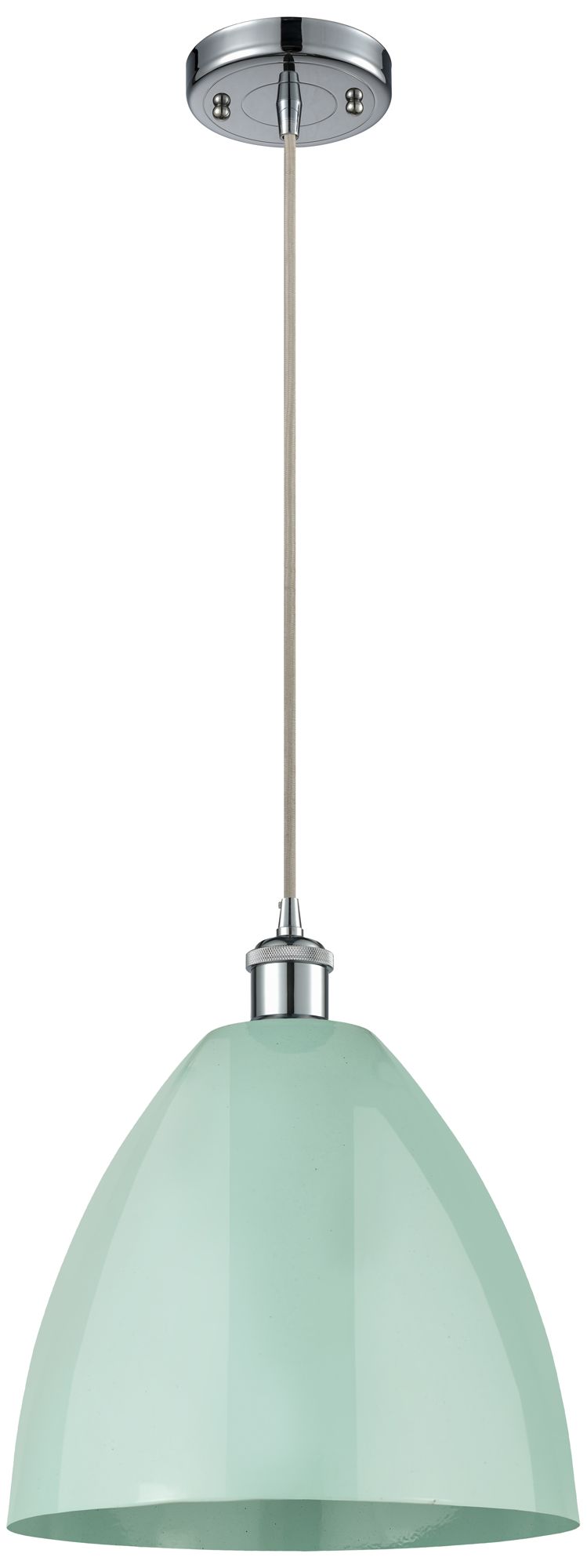 Ballston Plymouth Dome 12"W Chrome Corded Mini Pendant w/ Seafoam Shad