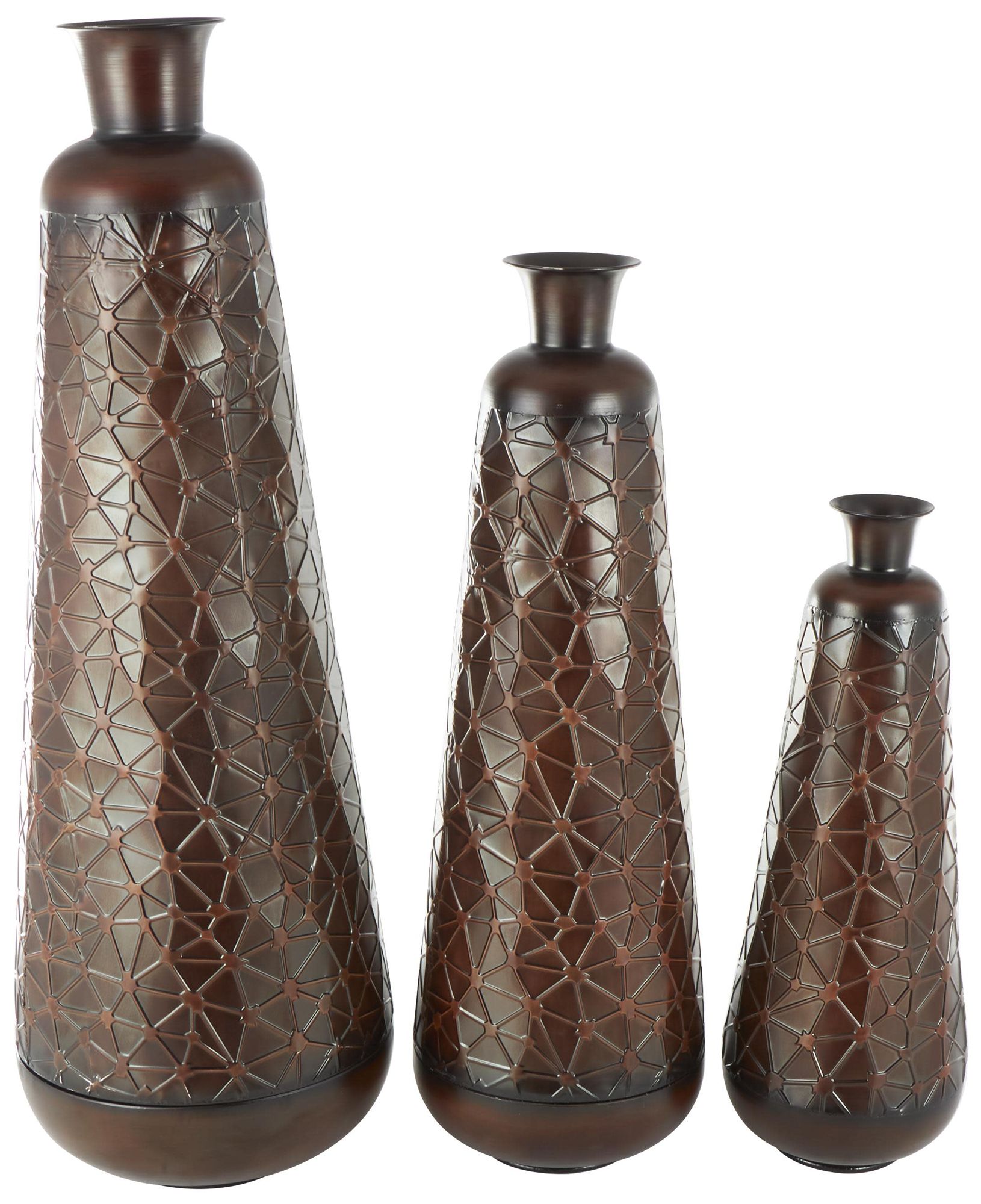 Dark Brown Metal Traditional Vase, S/3 53", 43", 32"H
