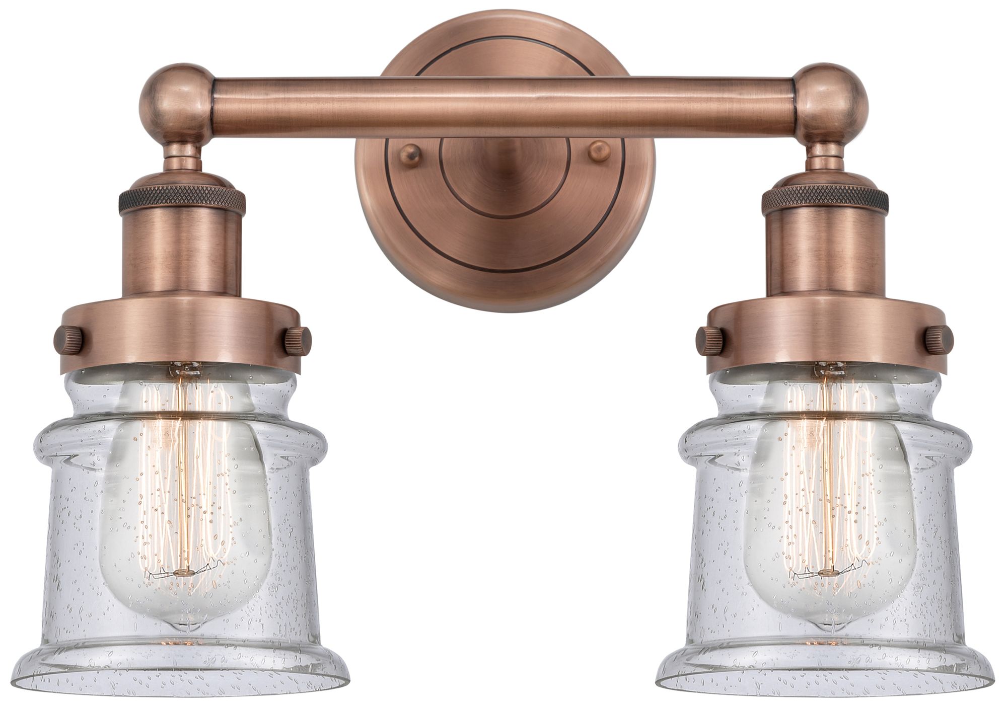 Canton 14.25"W 2 Light Antique Copper Bath Vanity Light With Seedy Sha