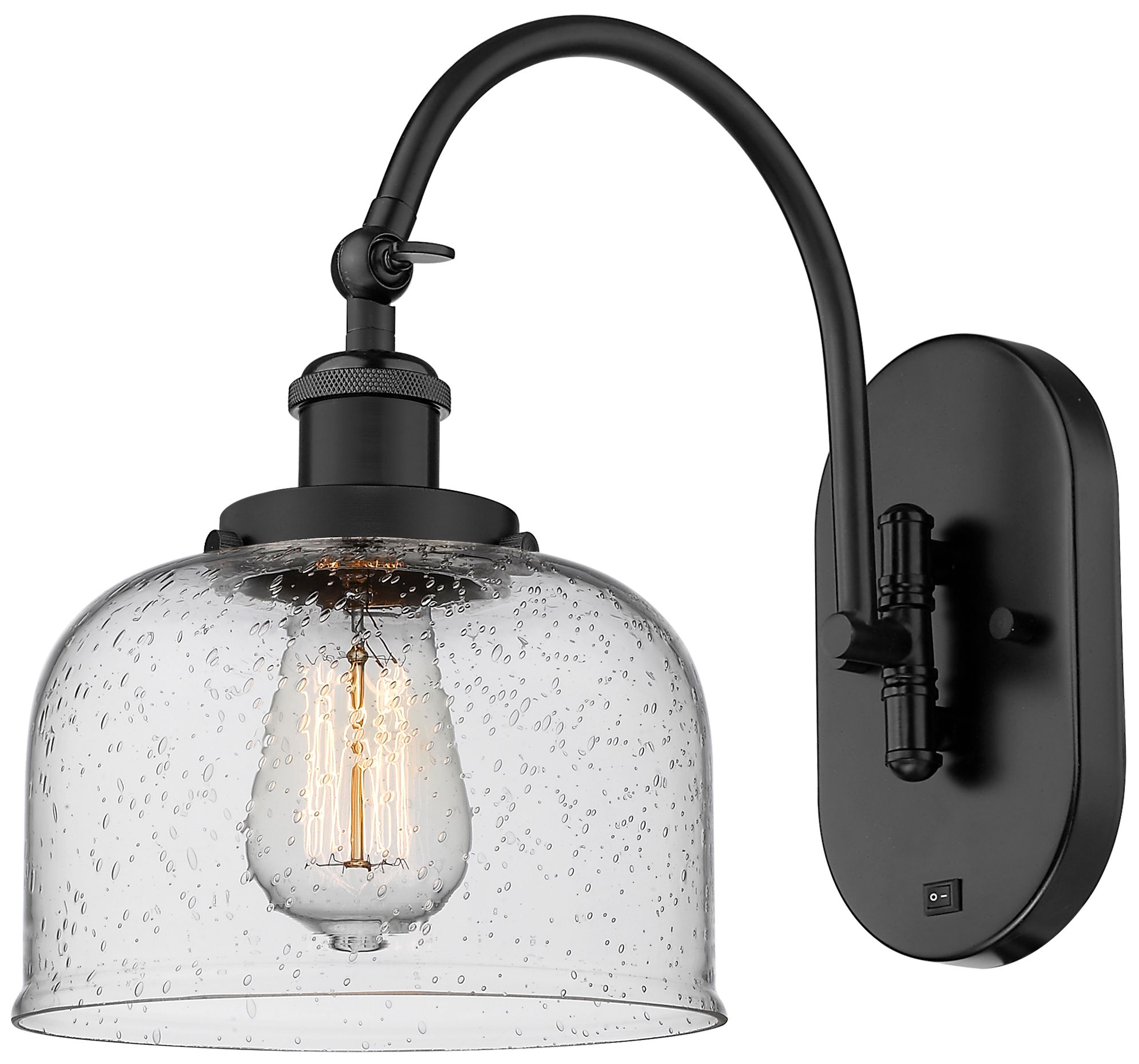 Franklin Restoration Bell 8" Incandescent Sconce - Black - Seedy Shade