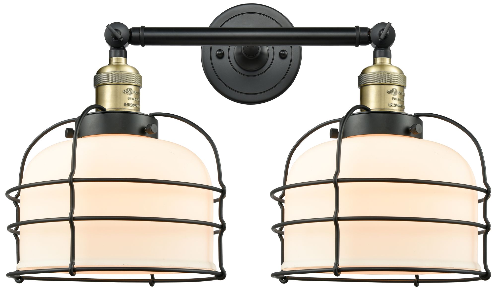 Franklin Bell Cage 19" 2-Light Black Brass Bath Light w/ White Shade