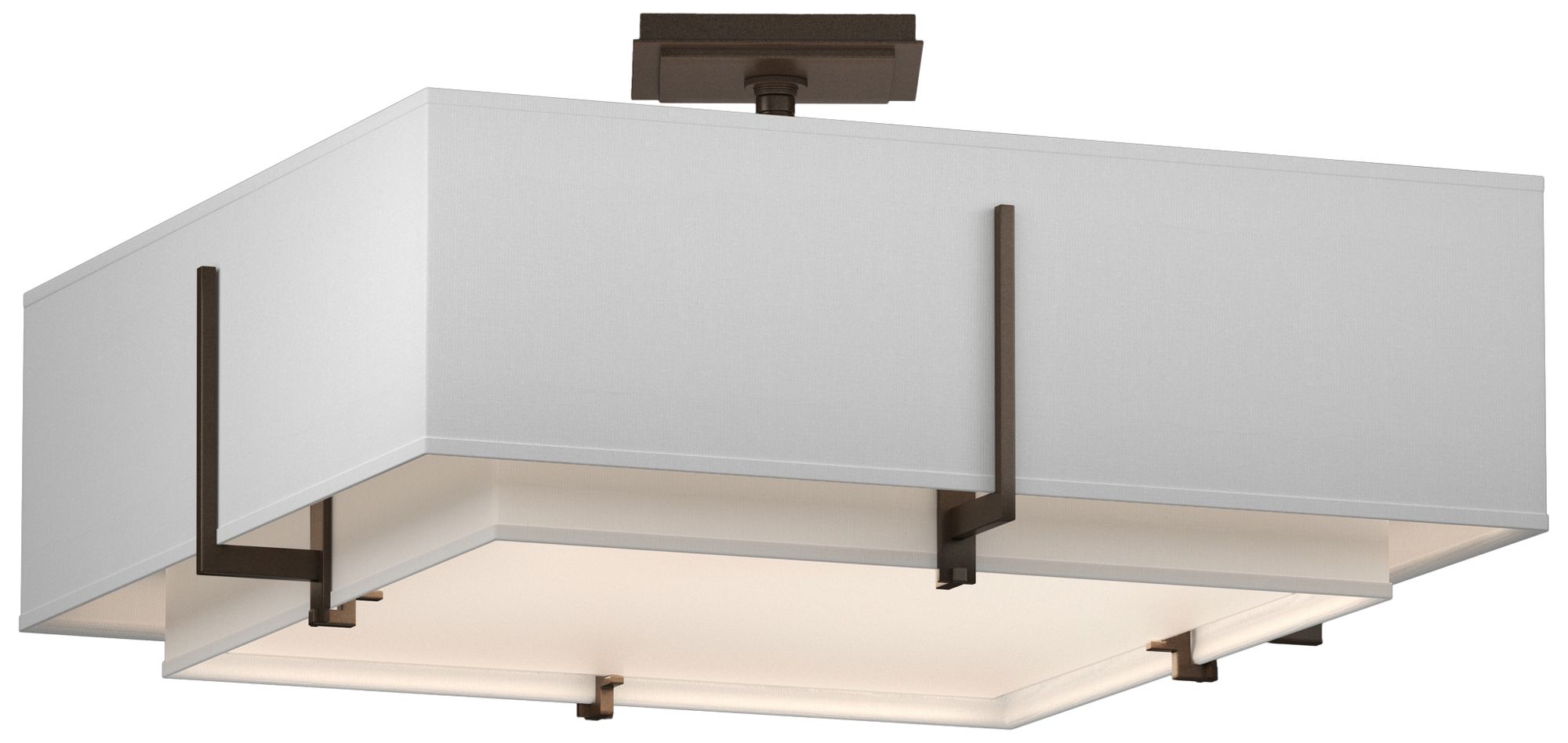 Exos 20.6"W Double Shade Square Bronze Semi-Flush w/ Anna & Anna S