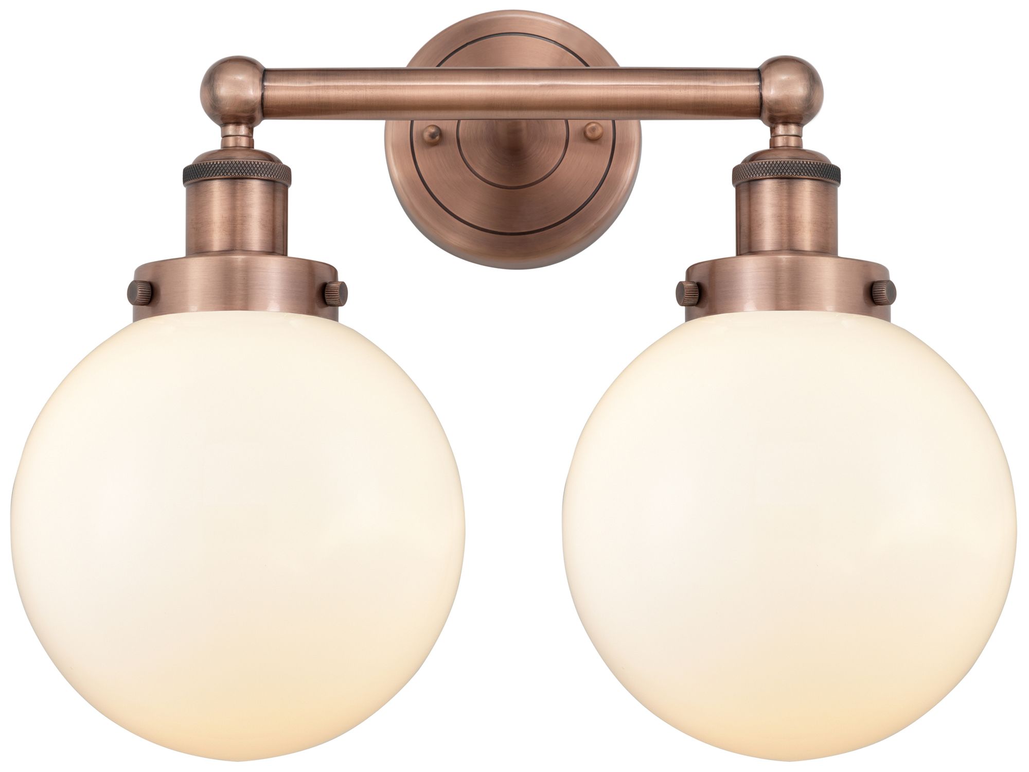 Edison Beacon 15.5"W 2 Light Antique Copper Bath Light With White Shad
