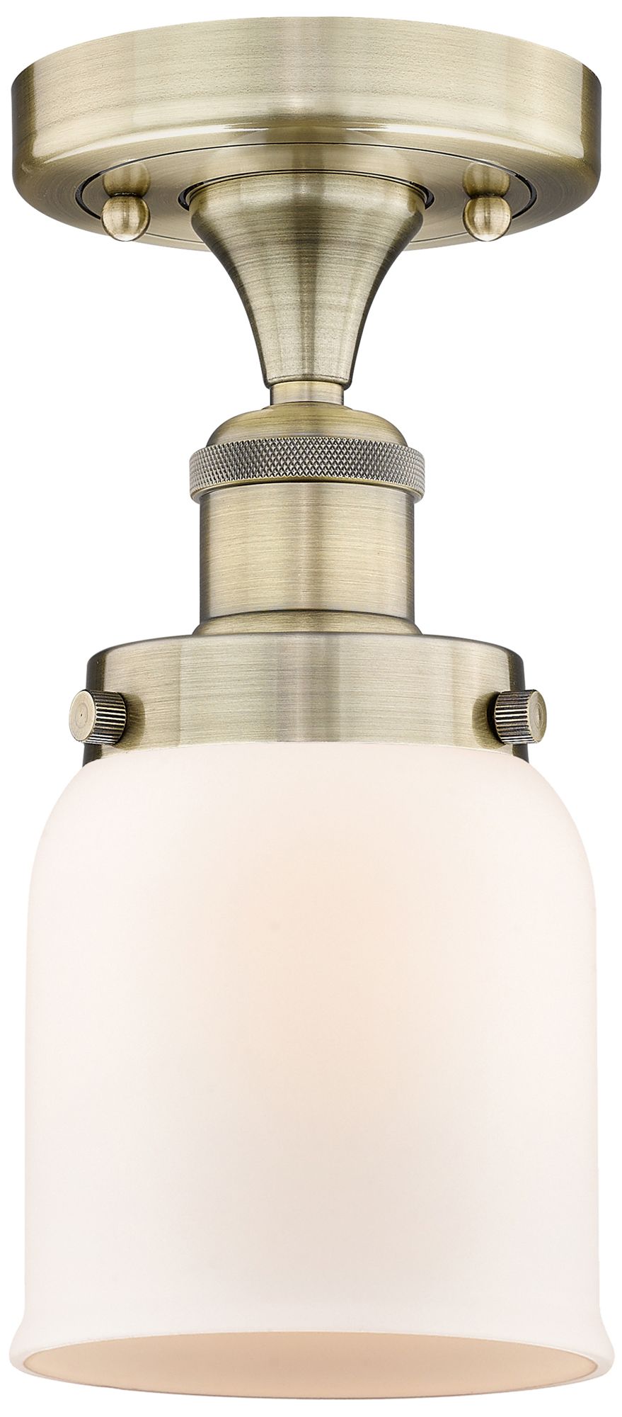 Bell 5" Wide Antique Brass Semi.Flush Mount With Matte White Glass Sha