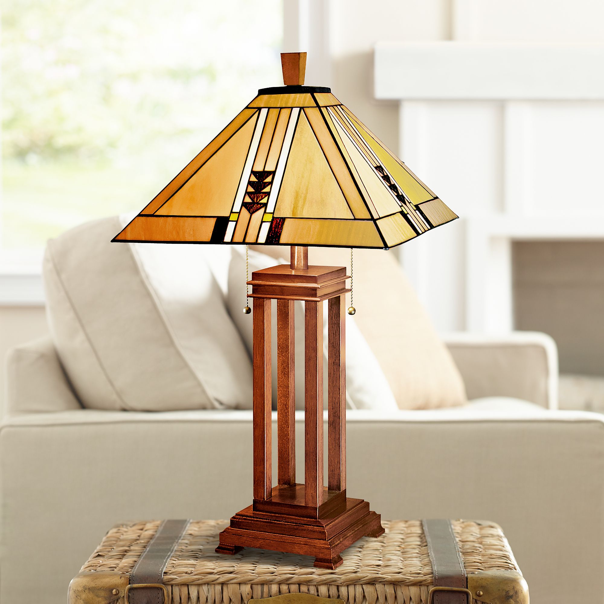 Mission Prairie Oak Table Lamp with 17W LED Bulbs