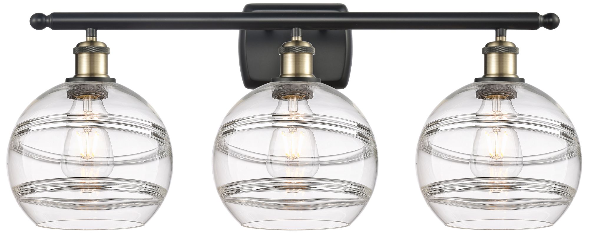 Ballston Rochester 28"W 3 Light Black Brass Bath Light w/ 8" Clea