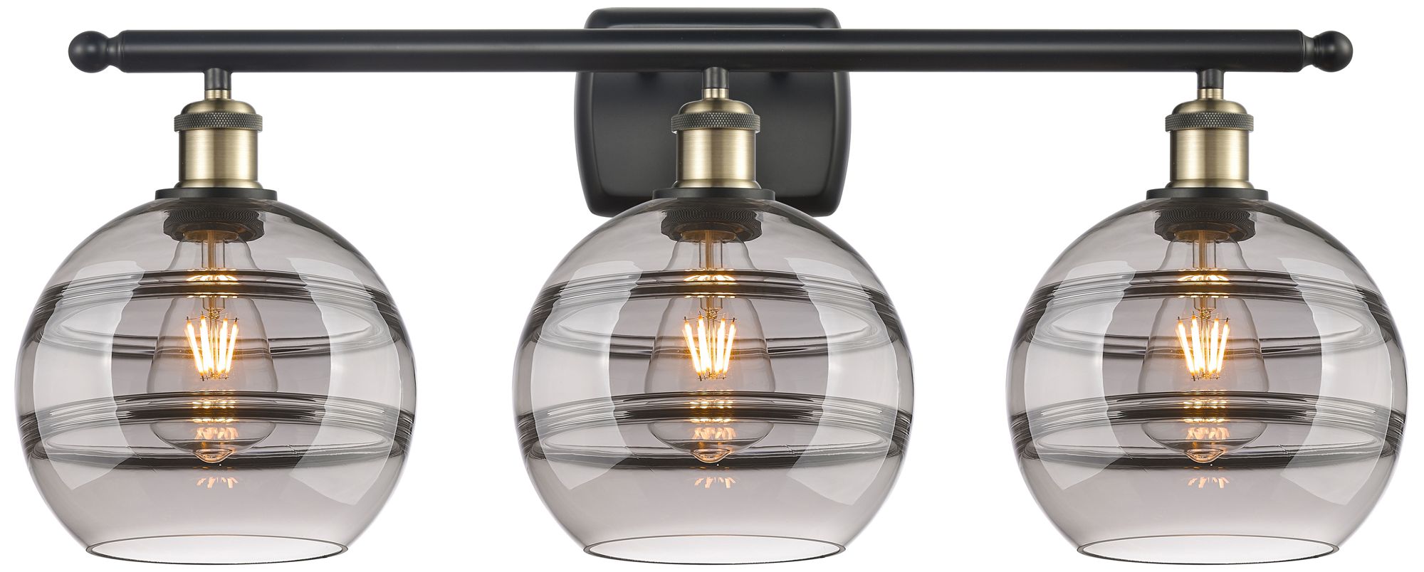 Ballston Rochester 28"W 3 Light Black Brass Bath Light w/ 8" Smok