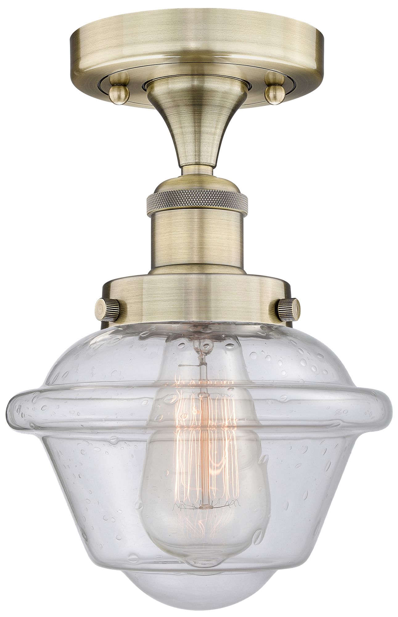 Oxford 6.5" Wide Antique Brass Semi.Flush Mount With Seedy Glass Shade