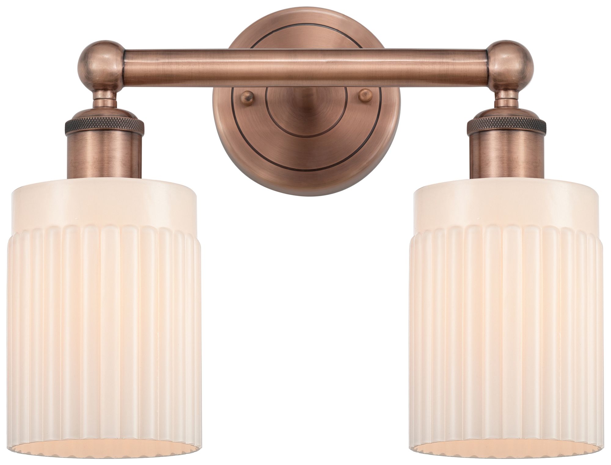 Hadley 13.5"W 2 Light Antique Copper Bath Vanity Light With White Shad