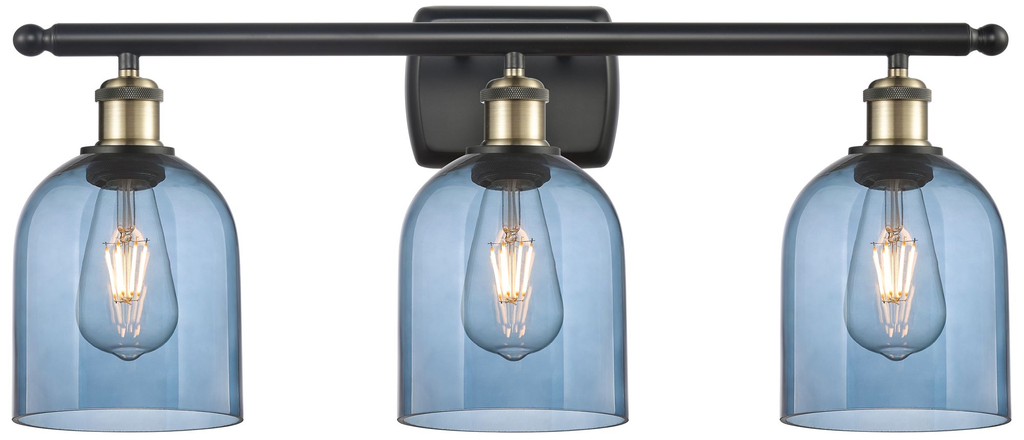 Ballston Bella 25.5"W 3 Light Black Antique Brass Bath Light w/ Blue S