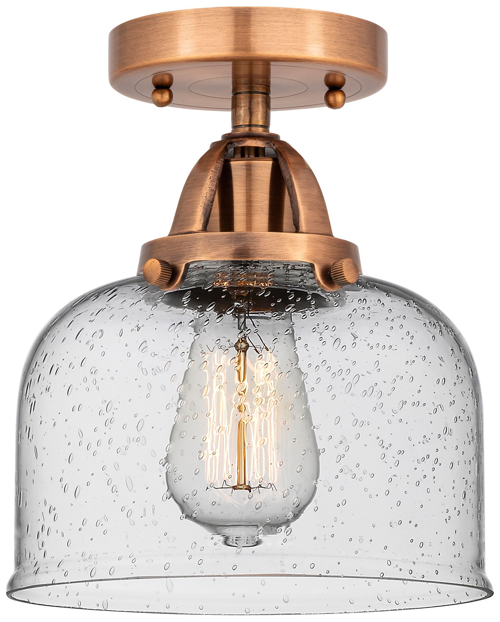 Nouveau 2 Bell 8" Semi-Flush Mount - Antique Copper - Seedy Shade