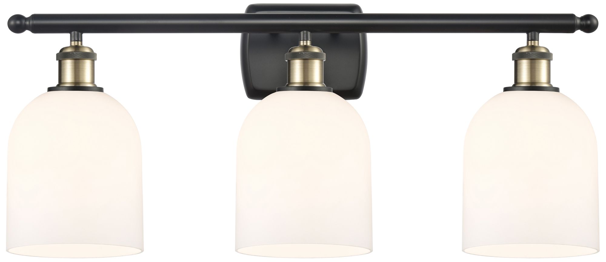 Ballston Bella 25.5"W 3 Light Black Brass Bath Light w/ Gloss White Sh