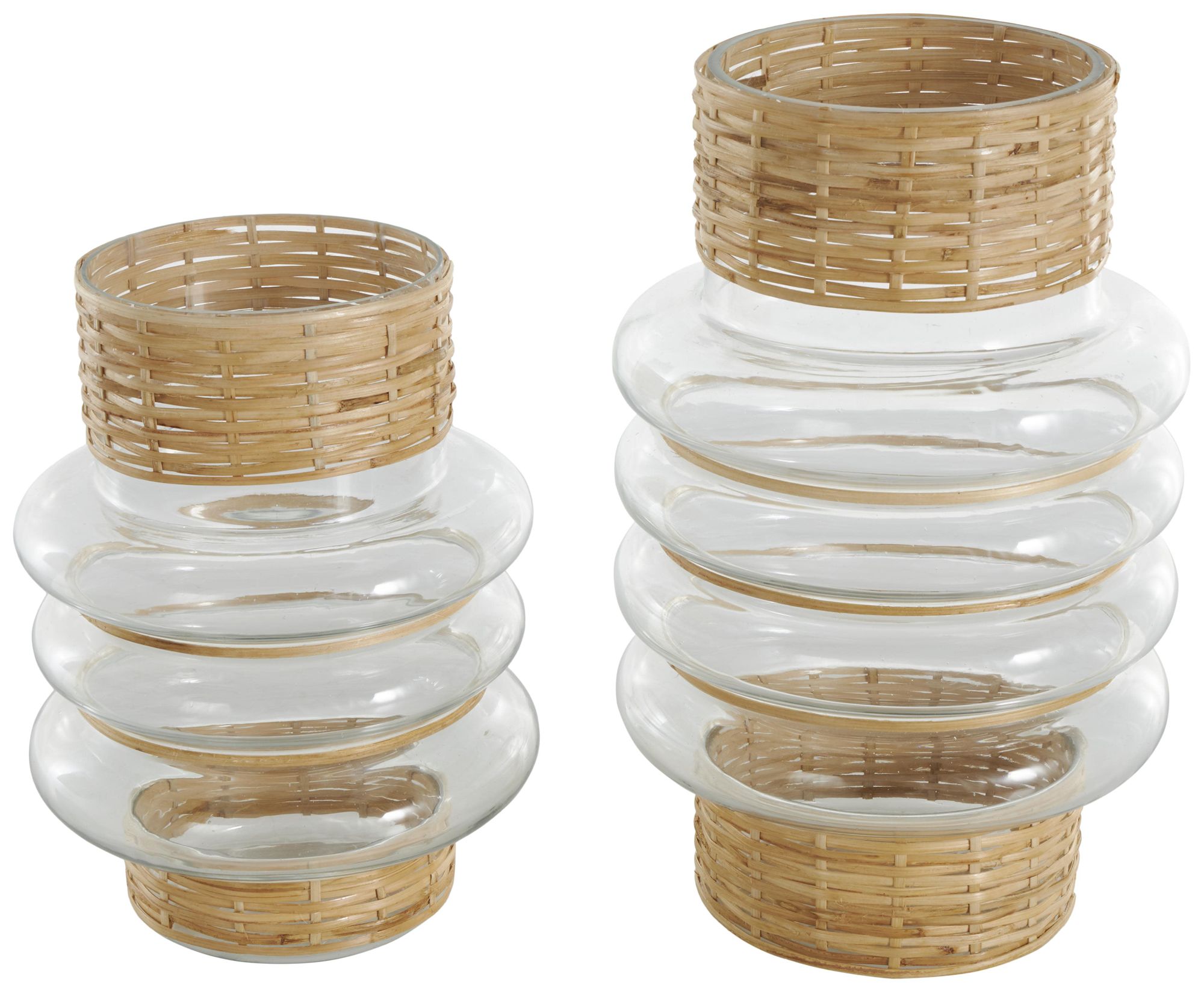 Clear Glass Bohemian Vase, S/2 12", 10"H
