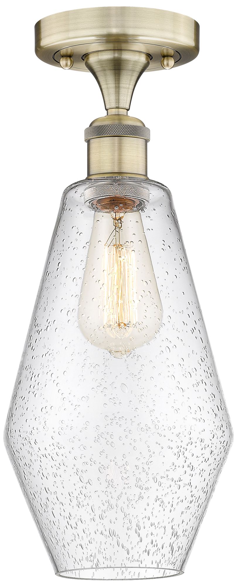 Cindyrella 7" Wide Antique Brass Semi.Flush Mount With Seedy Glass Sha